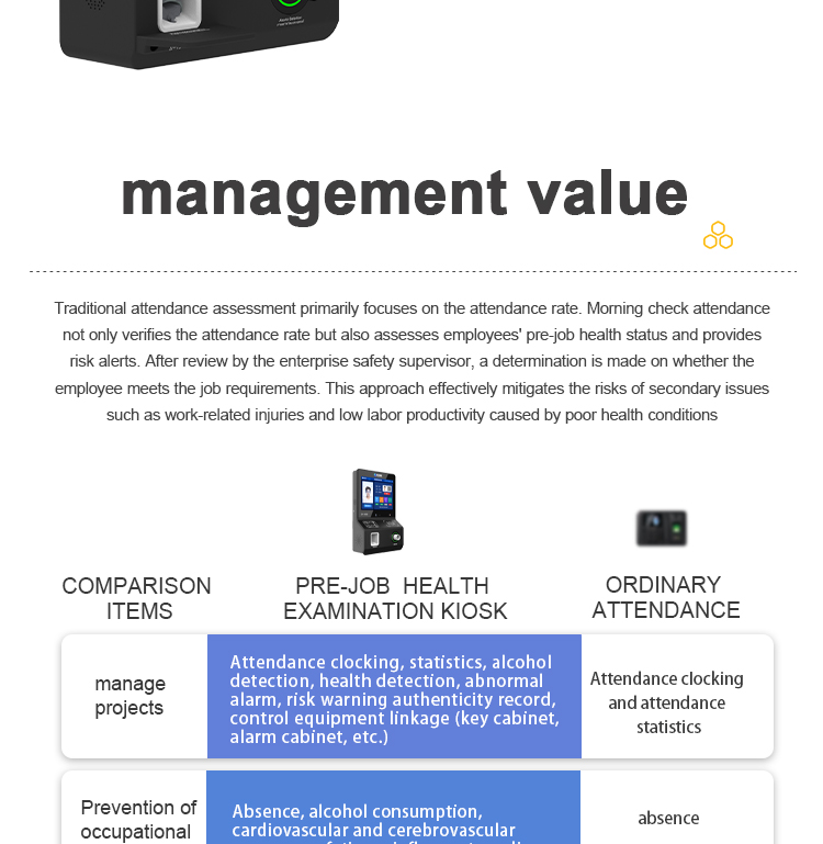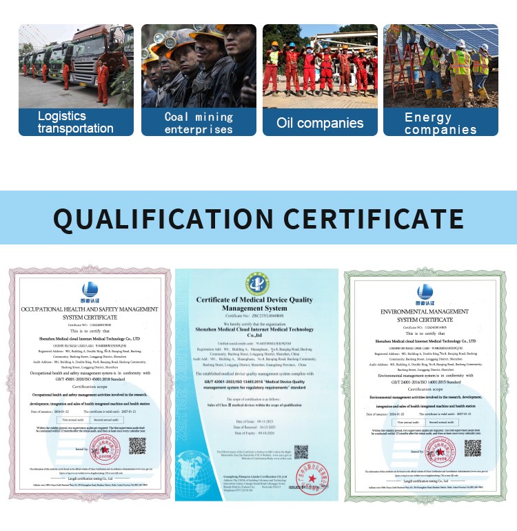 The product is used for health and safety testing of employees before they start work in transportation industries such as aviation pilots and bus drivers, as well as in high-risk fields like construction, coal mining, and electricity, or in companies.