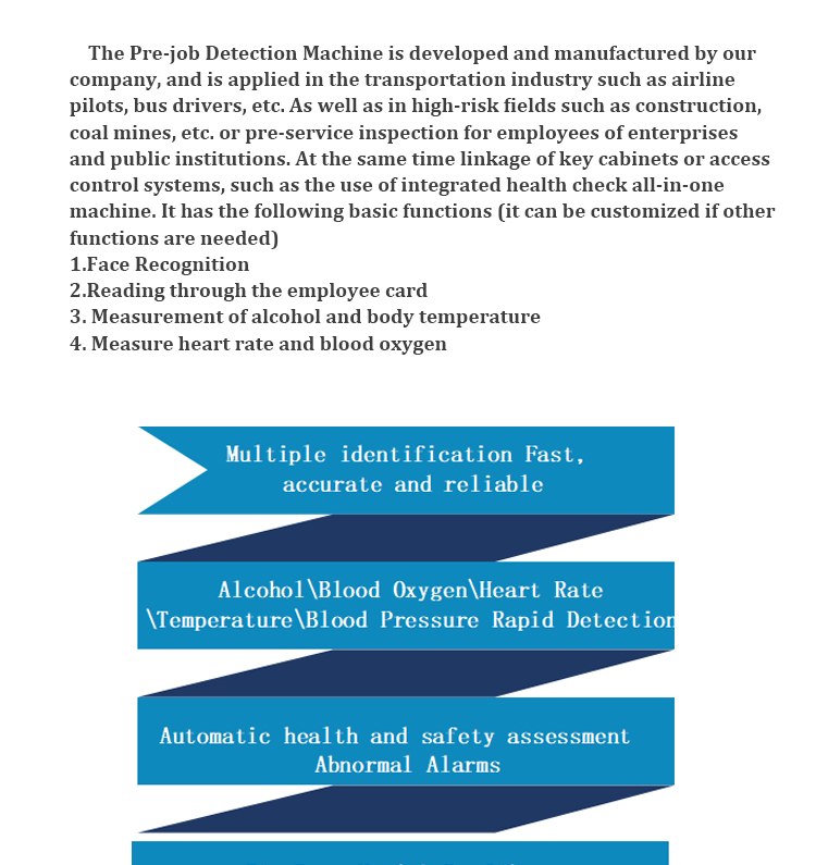 The product is used for health and safety testing of employees before they start work in transportation industries such as aviation pilots and bus drivers, as well as in high-risk fields like construction, coal mining, and electricity, or in companies.